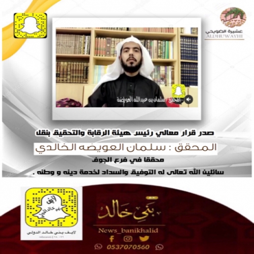 #صدور قرار #معالي رئيس #هيئة #الرقابة والتحقيق بنقل المحقق #سلمان #العويضه #الخالدي #محققا في فرع #الجوف