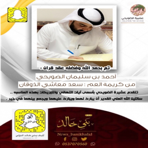 #عقد #قران #احمد #سليمان #الضويحي. http://www.banikhalidnews.com/new/s/5457